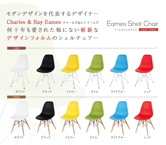 予めご了承くださいませ商品 イームズ シェル チェア サイズ スチール脚:L56×W46×H82 (SH42)cm木脚:L56×W46×H80 (SH42)cm 素材 シート素材:ポリプロピレン スチール脚素材:クロームメッキスチール 木脚素材:ブナ無垢材・スチールブラック塗装 カラー ホワイト・ライトブルー・イエロー・レッド・ライム・ブラック 生産 中国 組立品 お客さまにて組み立て 備考 デザイナーズチェアの中で最も有名なシェルチェア。