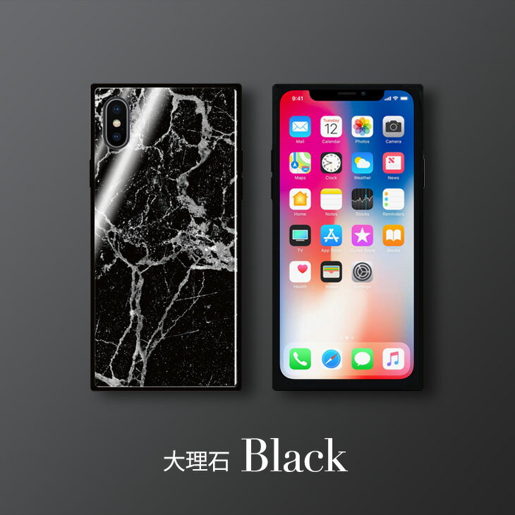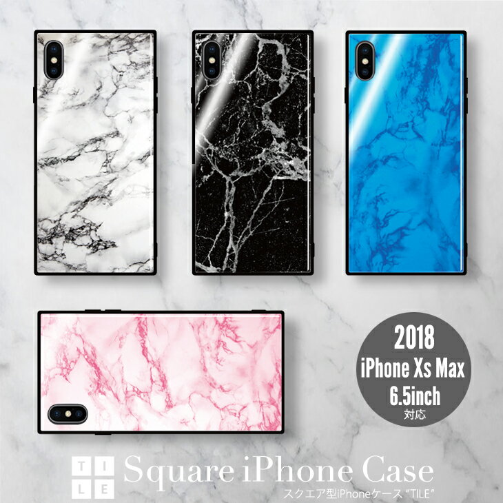 iPhoneXs Max ケース スクエア型 iPhone ケース TILE 大理石 背面強化ガラス EYLE iPhone Xs Max おしゃれ 耐衝撃 タイル