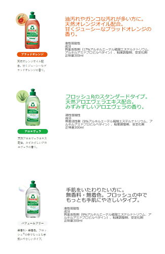 商品名 フロッシュ (Frosch) マーナスポンジ セット ( (ブラッドオレンジ、アロエ、パフュームフリーキッチンウォッシュ300ml) マーナ(MARNA)スポンジ フロッシュマーナスポンジギフトセット 商品番号 FRS0036 サイズ ボックス: 23.5×9×7cm セット内容 『キッチンウォッシュ300ml』 『マーナスポンジ』 液性 『ソーダキッチンウォッシュ』 : 中性 『アロエベラキッチンウォッシュ』 : 弱酸性 成分・材質 『ソーダキッチンウォッシュ』 界界面活性剤(30%、アルキルスルホン酸ナトリウム、アルキルエーテル硫酸エステルナトリウム、 アルキルベタイン)、保存料 『アロエベラキッチンウォッシュ』 界面活性剤(15%、ラウリル硫酸ナトリウム、コカミドプロピルペタイン)、保存料、香料 ブランド Frosch (ドイツ) ブランドについて Frosch(フロッシュ)は、130年の歴史を誇る、ドイツのWerner & Mertz(ヴェルナー&メルツ)社が 生産している、家庭用洗剤のブランドで、1986年に誕生しました。