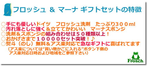 【のし無料&バッグ付】 フロッシュ (Frosch)マーナスポンジ ギフトセット (食器用キッチン洗剤(アロエベラ等)300ml & スポンジ 【HLS_DU】(引き出物/引出物/出産内祝い/快気祝い/結婚式/内祝い/お返し/引越しご挨拶/香典返し