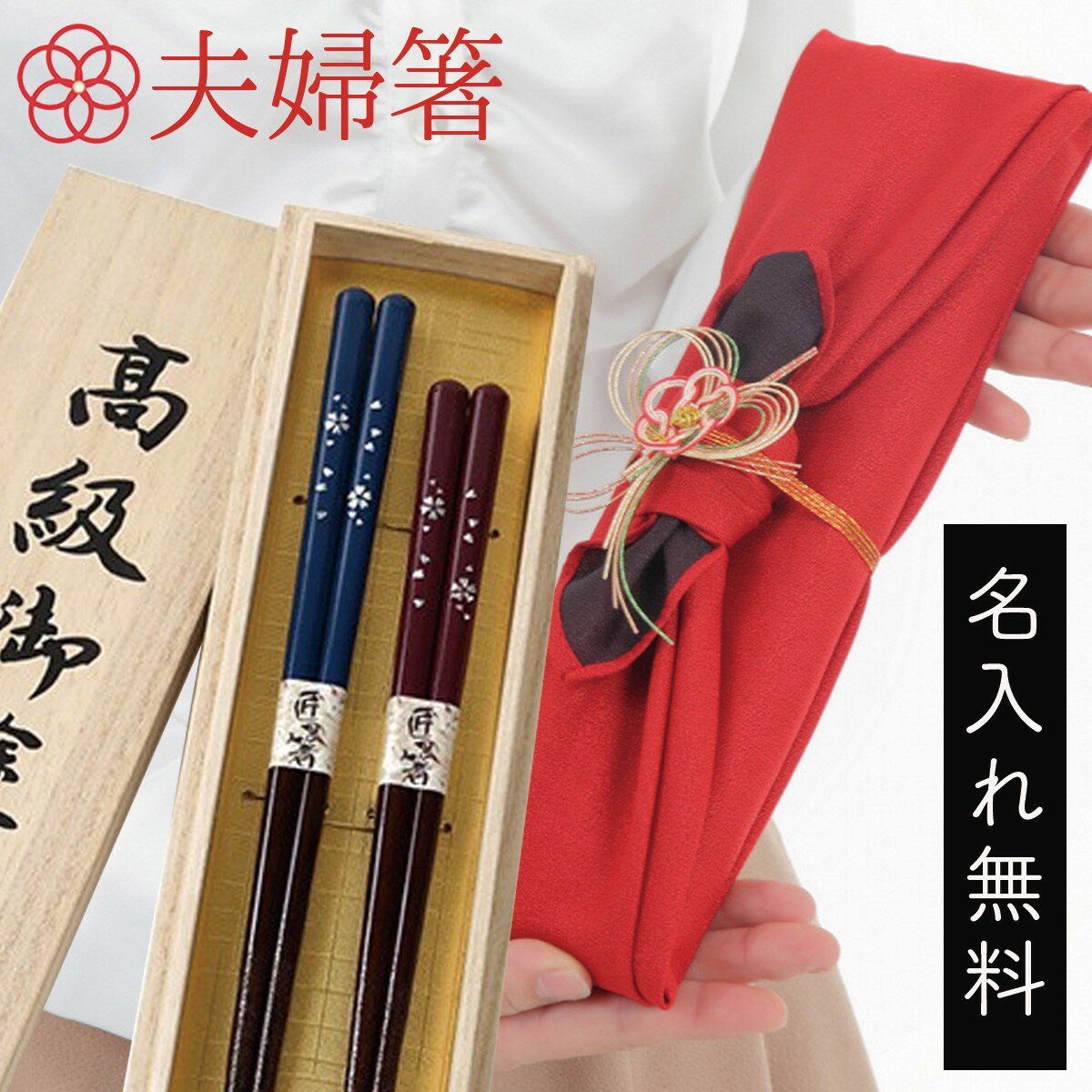 CODE 商品コード 061s61139 ITEM 商品名 結婚祝い 母の日 夫婦箸 名入れ 食洗機対応 贈り物 ペア 高級箸 おしゃれ かわいい 桐箱 箸 ペア 二膳セット 箸 ペア 結婚祝い 母の日 夫婦箸 桜 御結婚祝い ブライダル ウエディング SPEC スペック 長さ男性用/23.0cm、女性用/21.0cm 原産国日本(Made in Japan) 材質天然木 表面塗装ポリウレタン パッケージ桐箱に、風呂敷ラッピング(夫婦箸、女性用箸は赤色。