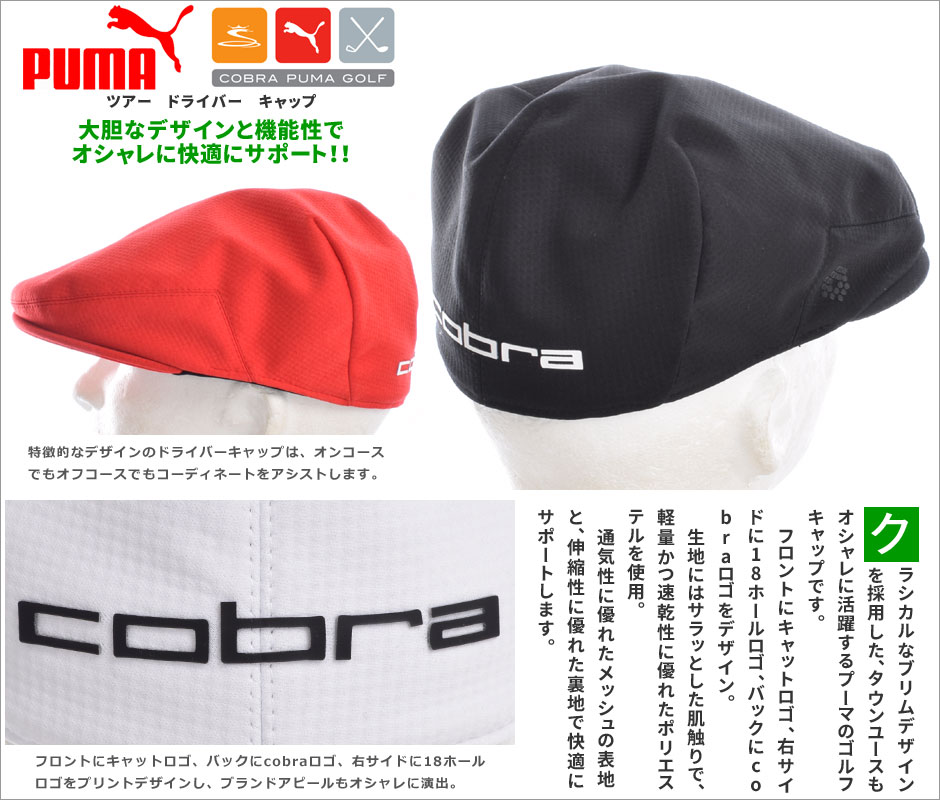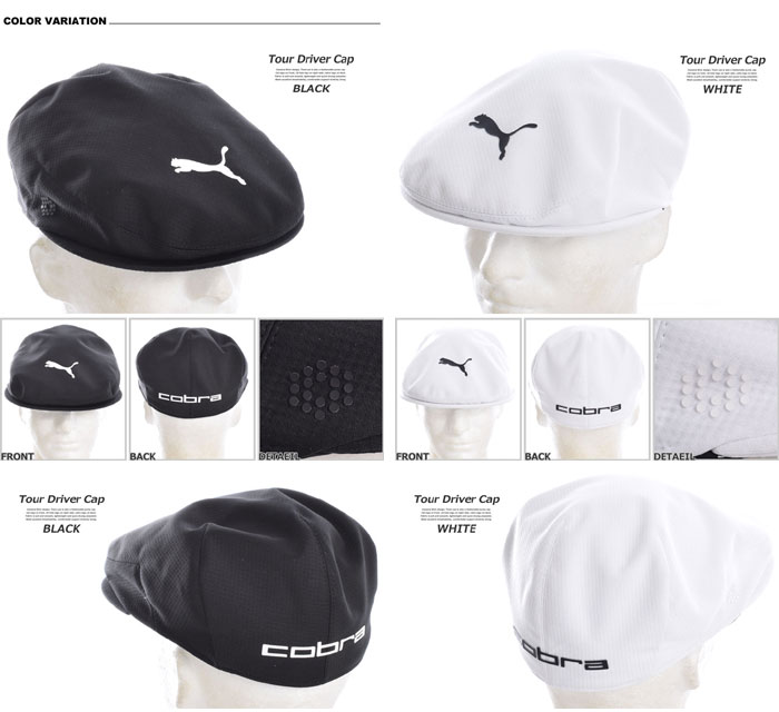フロントにキャットロゴ、右サイドに18ホールロゴ、バックにcobraロゴをデザイン。