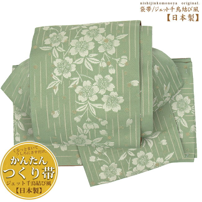 【作り帯番号:GJ-26】【日本製】オシャレで簡単♪ゆかた作り帯(結び帯)【袋帯】ジェット千鳥結び風(お太鼓風)上品で使い勝手の良い柄とカラバリ!コーディネートしやすい帯☆若葉色、みどり、黄緑大人の浴衣作り帯/結び帯